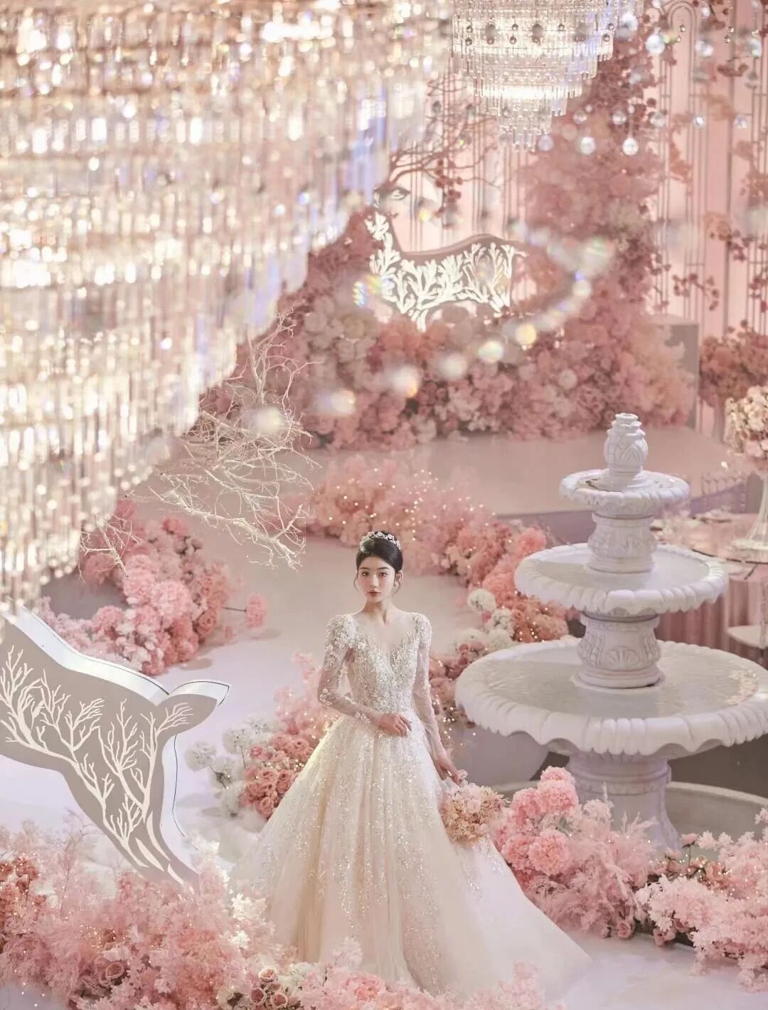Create a wedding hall with local characteristics; you can also choose popular fashion elements such as stars, ocean, garden, etc. as the theme to meet the personalized needs of young people.